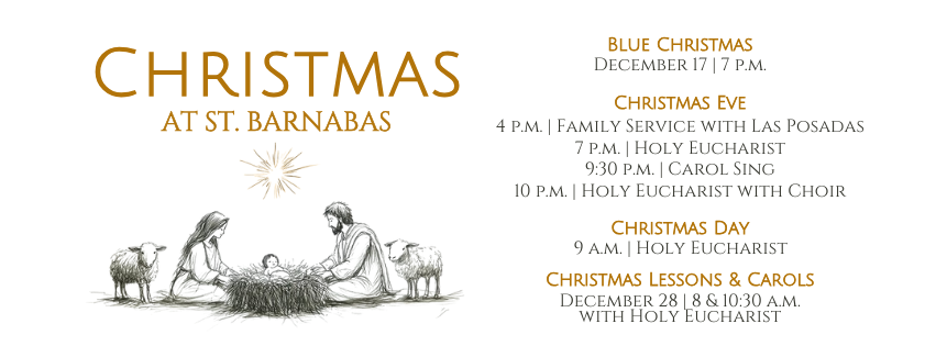 Welcome to the St. Barnabas community! We invite you to worship with us on Sunday mornings. At 8 a.m. we celebrate Holy Eucharist, Rite I, and at 10:30 a.m. we celebrate Holy Eucharist, Rite II. Click the buttons below to find our service bulletins, or to watch our services on YouTube, listen on Spotify, or to read copies of Sunday sermons.